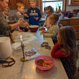 She read them a passage and then they took turns helping her make the dough for the ornaments. While they were baking, we had lunch and they played, romped, dressed up, pretended until their hearts content. We had previously rescheduled our gathering due to sickness, so they were beyond excited to get together. Too much time had passed. I'm thankful for Bri and her friendship, support, and encouragement. She is also a fellow homeschooler, and provides me reassurance when I need it most, and I try to do the same for her. I'm blessed with her friendship and I know our kids are so happy to have each other. Give it a week and the kids will be asking when we will get together We played the new Clifford movie for them but as soon as the popcorn bowls ran out, so did their attention to the movie.